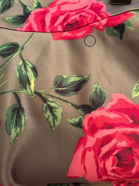 | 素材+商品説明 | 表地:ポリエステ100% 裏地:ポリエステル100% 表面がつるつるした生地でしっかりしており、高級感があります。3回位の着用です。 ウエスト部分に2mm程度のうっすらとしたシミがあります。出品の準備をしている時に付いた気がします。クリーニングで取れるかもしれません。 |