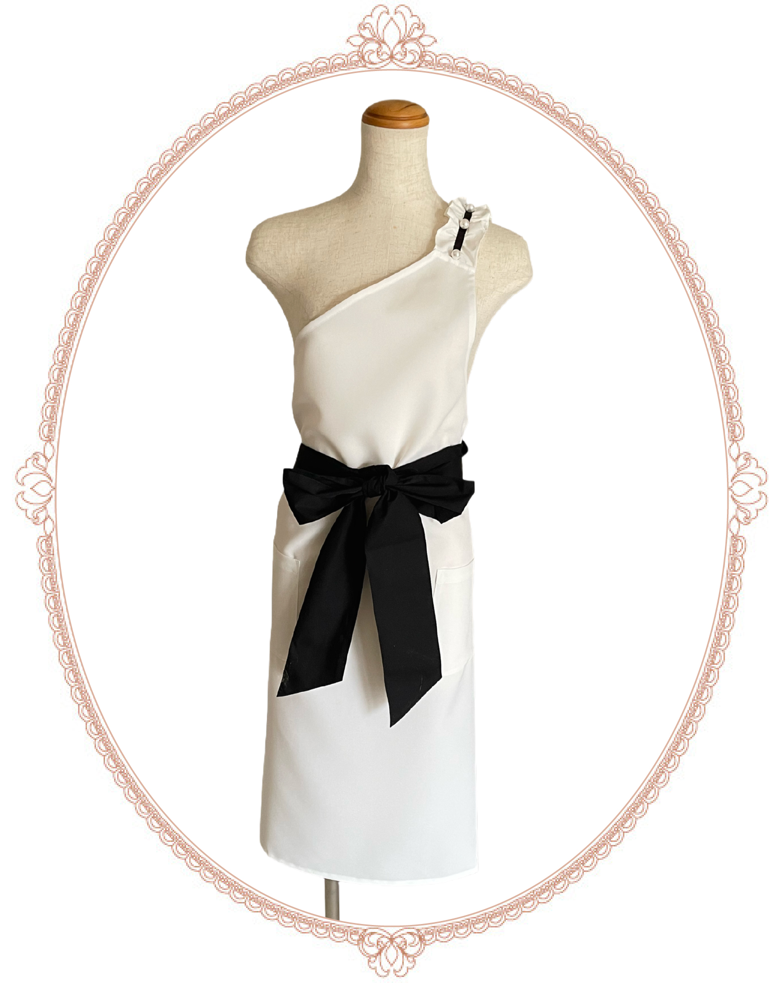 - フルタイムの会社員の傍ら、素敵なホテルやお宿をご紹介するユーチューバーとしてもご活躍のよしえ様に、「ブリリアントエプロン ホワイト×ブラック丈長め」を