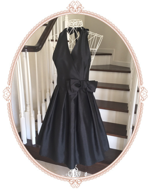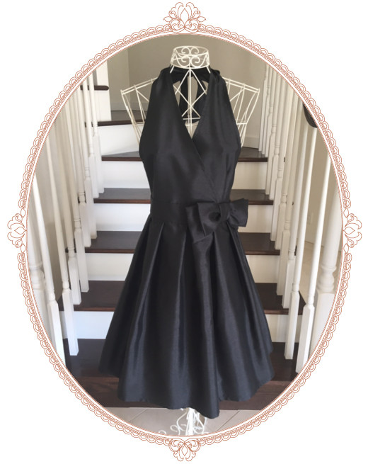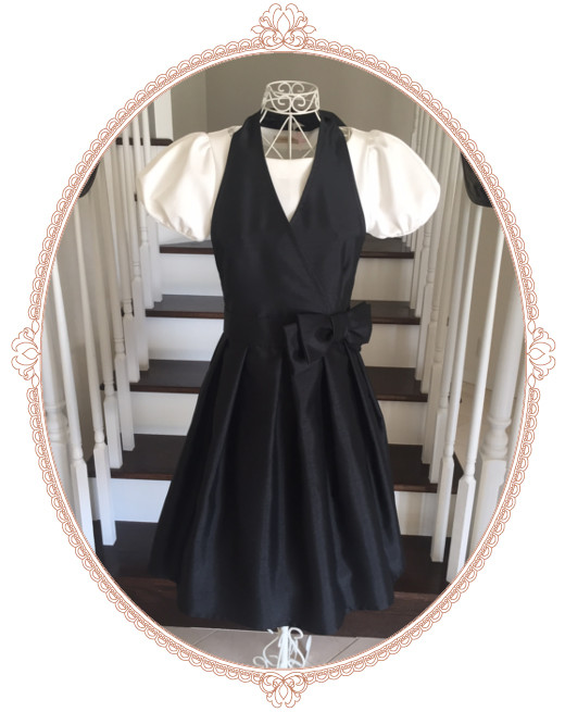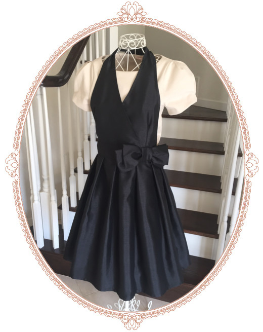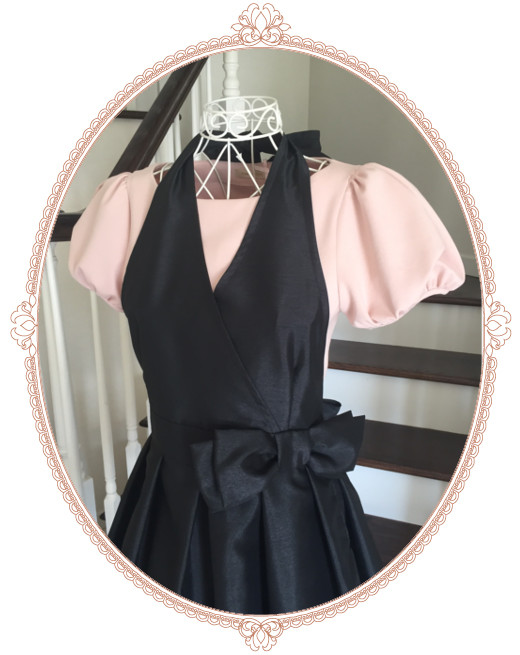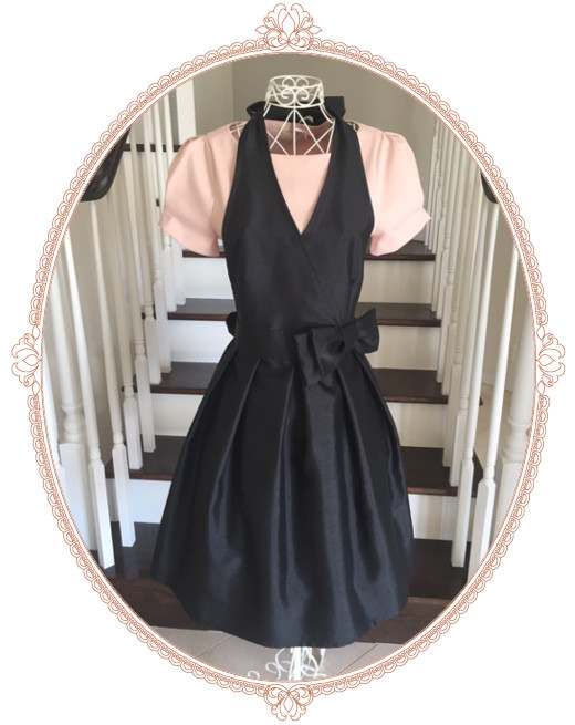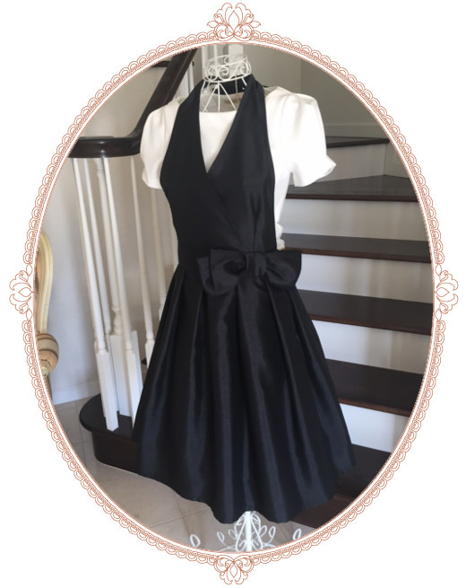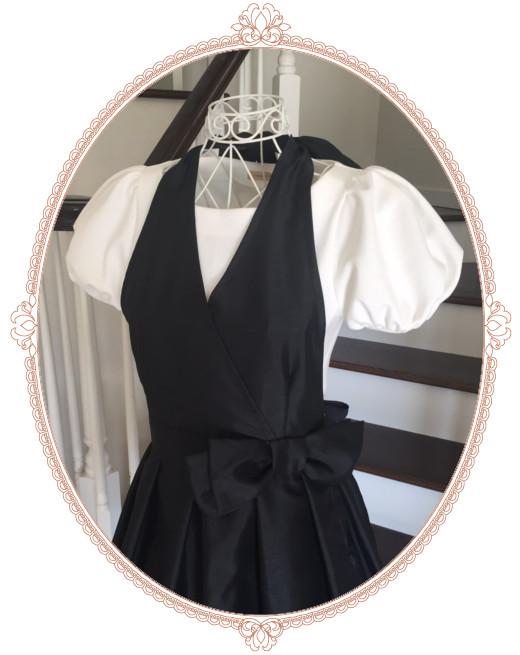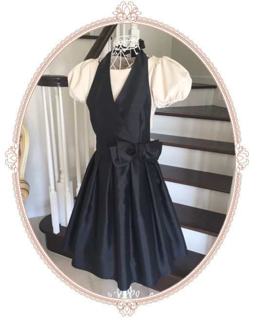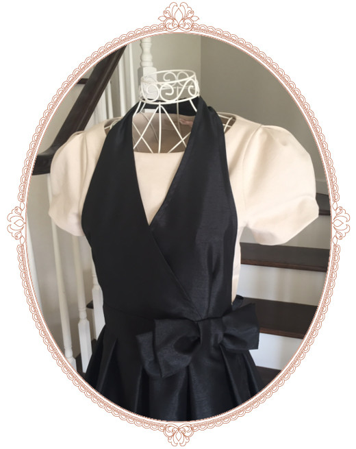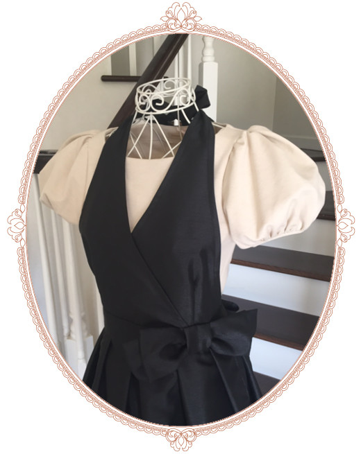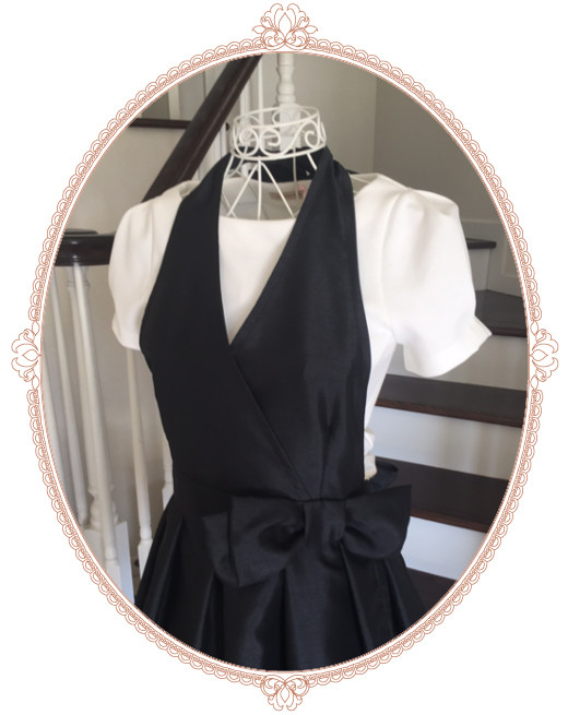 カシュクールbigリボンふんわりエプロン シャンタンブラックサイドリボン