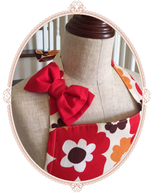 シンプルAライン肩ひもリボンエプロン レッドフラワー for kids