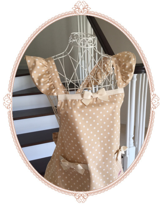 プリンセスフリルリボンエプロン ベージュホワイトドット
