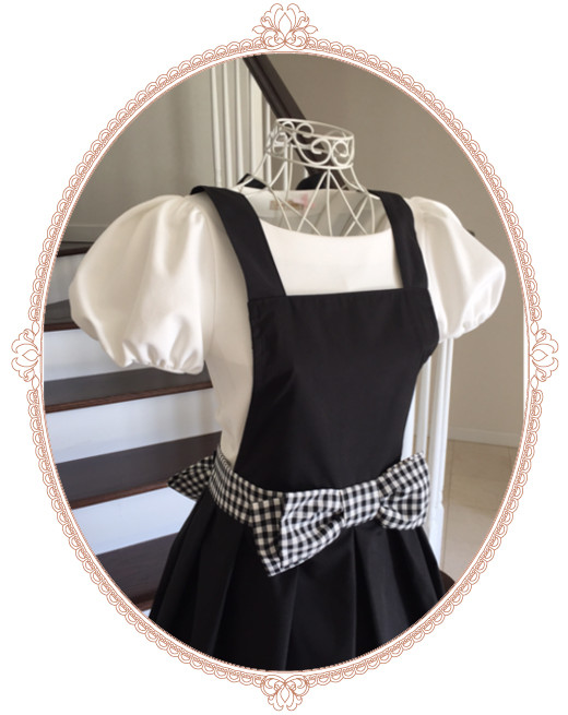 Bigリボンふんわりドールエプロン 黒×黒白チェックリボン(タック)