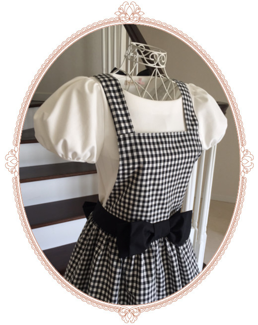 Bigリボンふんわりドールエプロン 黒白チェック(ギャザー)