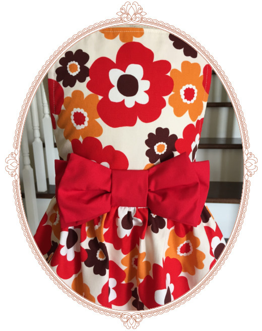 Bigリボンふんわりドールエプロン レッドフラワー(肩ひもレッド) for kids