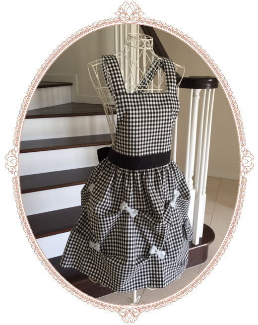 プリンセスウェーブドールエプロン 黒白チェック×ブルーリボン
