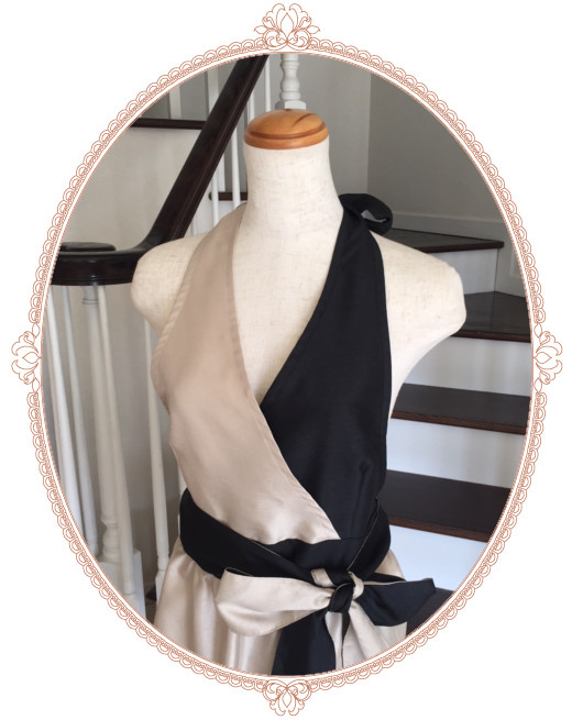 スタイリッシュカシュクールエプロン シャンタンベージュ×ブラック