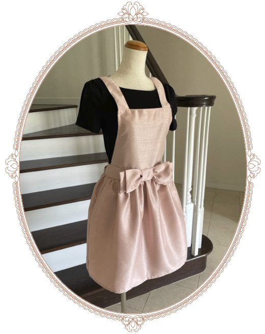 Bigリボンふんわりドールエプロン シャンタンピンクベージュ(ギャザー)