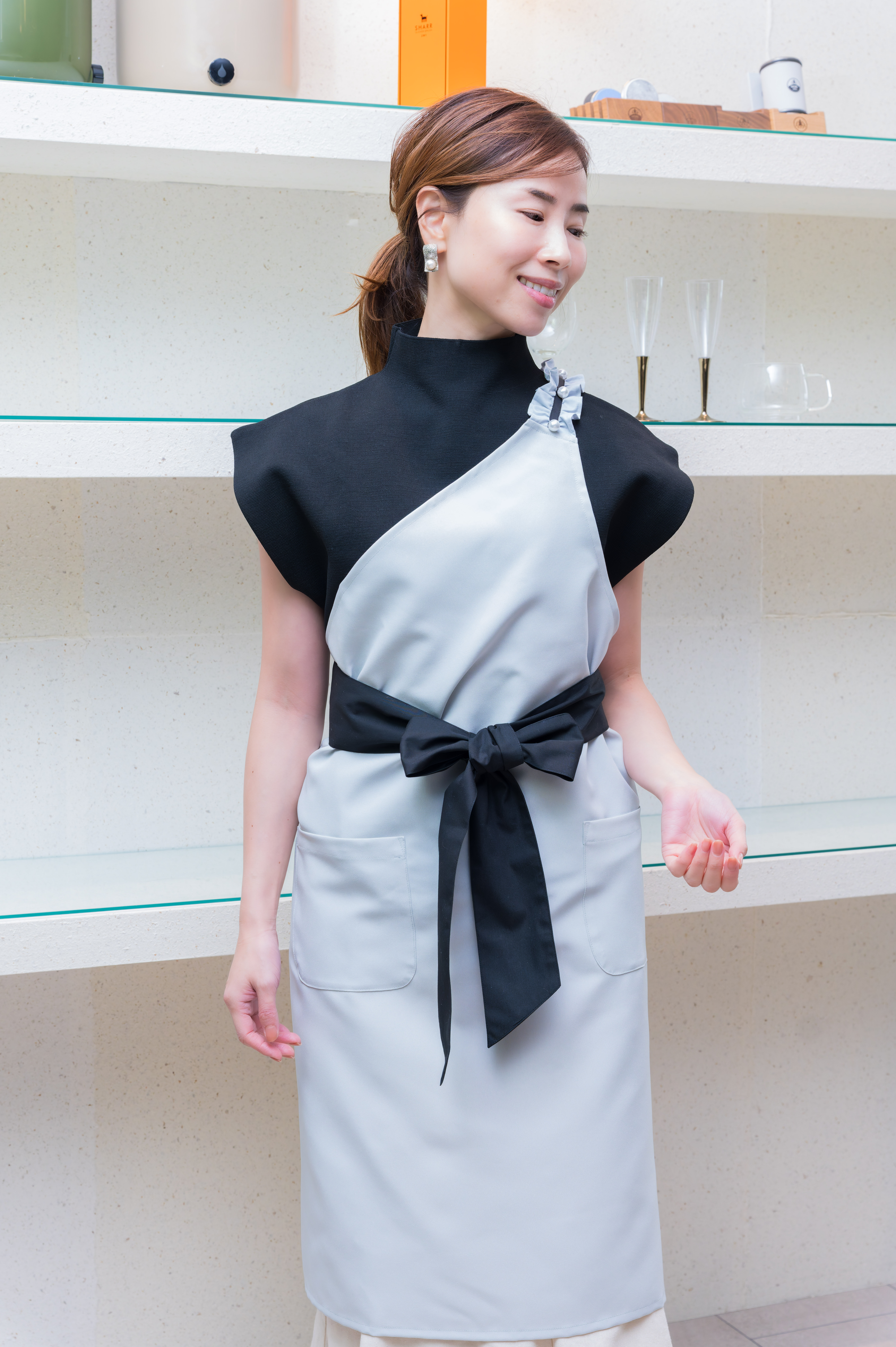 肩ひもフリルパールエプロン(タイト) グレーNew×ブラック