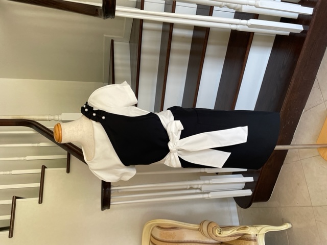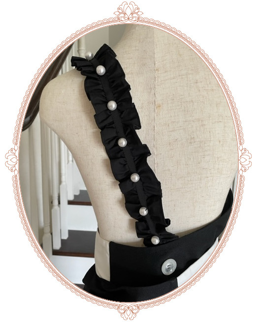 肩ひもフリルパールエプロン(タイト) ブラックNew×ホワイト