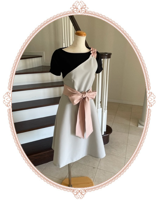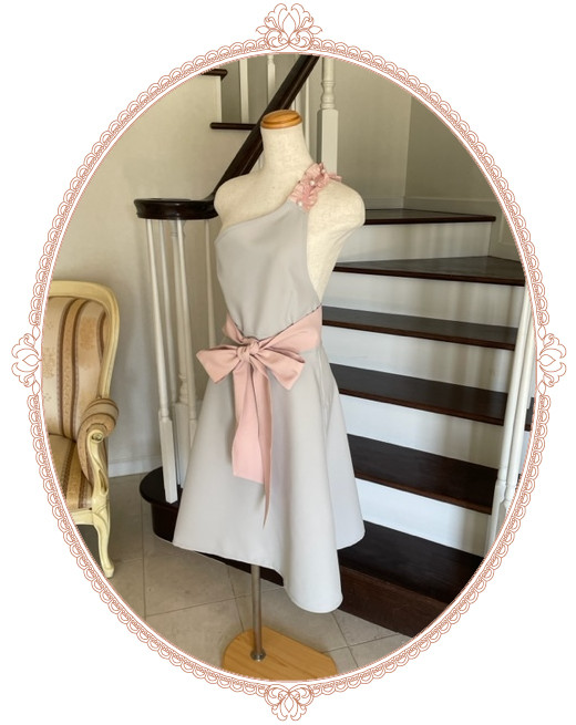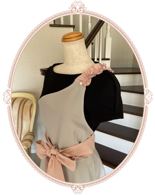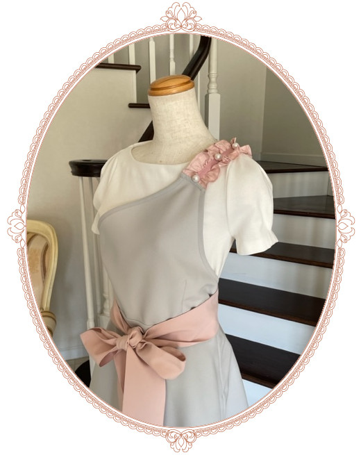 肩ひもフリルパールエプロン(フレアー) グレーNew × ピンク