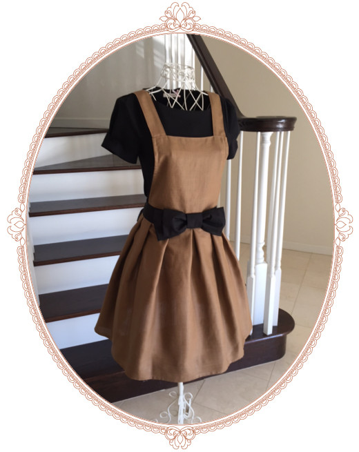 Bigリボンふんわりドールエプロン ブラウン×ブラック(タック)