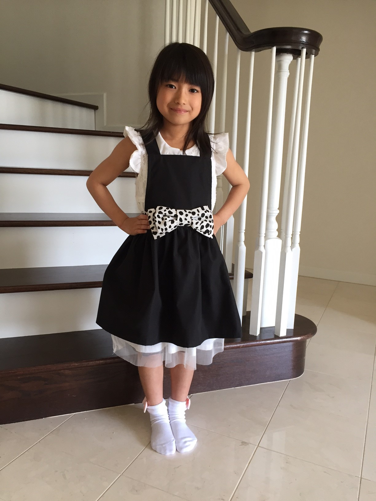 Bigリボンふんわりドールエプロン ブラック×ダルメシアンホワイト for kids